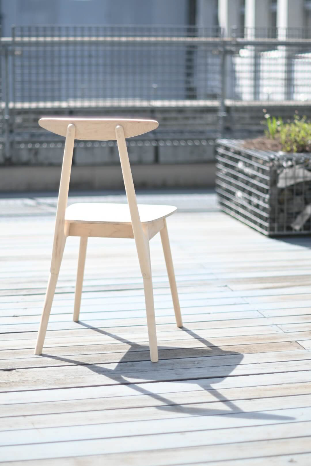 華奢な脚が4方向に伸びてゆき、後脚から伸びた背もたれがまるで鹿の角のように見えたため Bumbi Chair と名付けた。